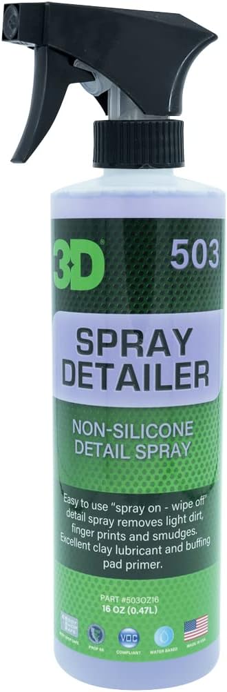 These types of industries spray fresh paint and as such any products taken into and used in these types of fresh paint environments must be formulated specifically for their needs. 3D Spray Detailer is formulated without the use of silicone or any other ingredients that could contaminate a fresh paint environment yet is works just a great as our 3D Final Touch.