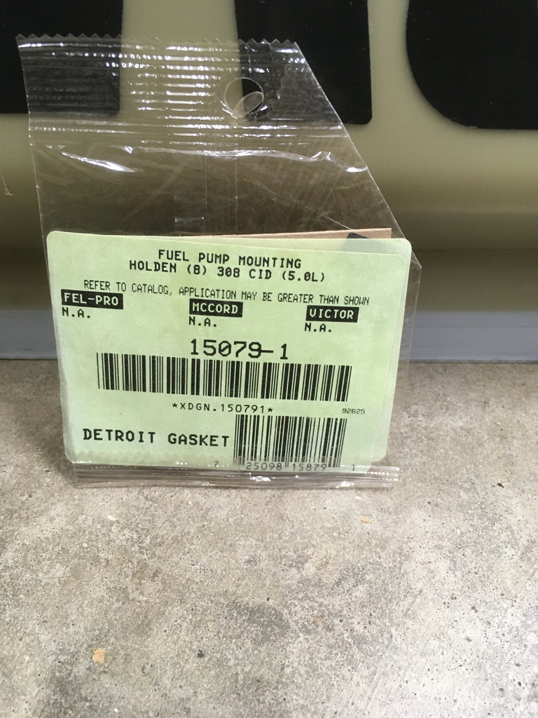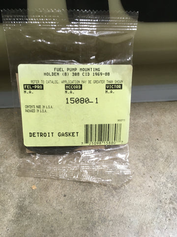 1969-88 HOLDEN GAKET SET. INCLUDES: FUEL PUMP MOUNTING PART # 15080-1, FUEL PUMP MOUNTING PART # 15079-1, WATER OUTLET PART # 11199-1, WATER PUMP TO BLOCK PART # 12232-1, EXHAUST MANIFOLD SET PART # 18604, VALVE COVER SET PART # 19642, OIL PAN SET PART # 16620, AND TIMING COVER SET PART # 14415