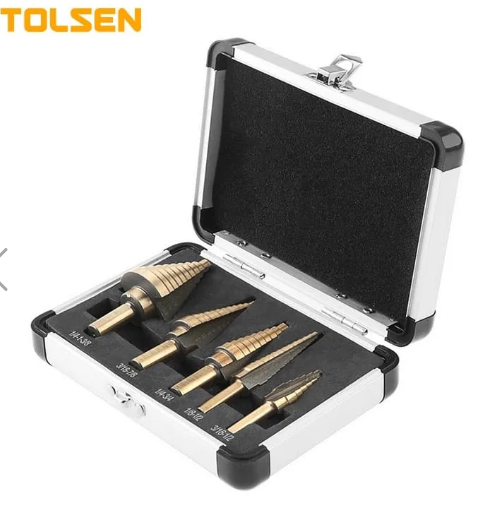 • HSS, Hardened•Contains:1/4″ – 1-3/8″ x 10 steps3/16″ – 7/8″ x 12 steps1/4″ – 3/4″ x 9 steps1/8″ – 1/2″ x 13 steps3/16″ – 1/2″ x 6 steps•Titanium coating surface•Packing: aluminium case with color box
