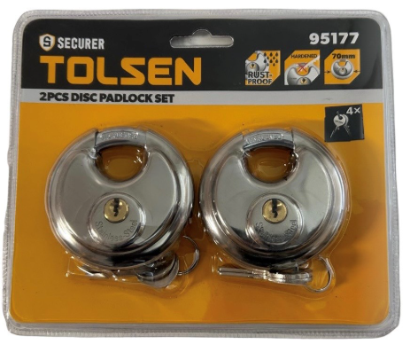 TOLSEN 95177 2PC DISC PADLOCK SET