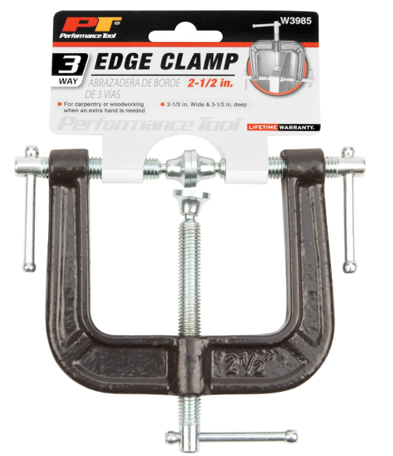 Malleable Iron Edge Clamp for Carpentry and Woodworking, Zinc-Plated Spindles and Free-Revolving Pads, 2-1/2-Inch Capacity
