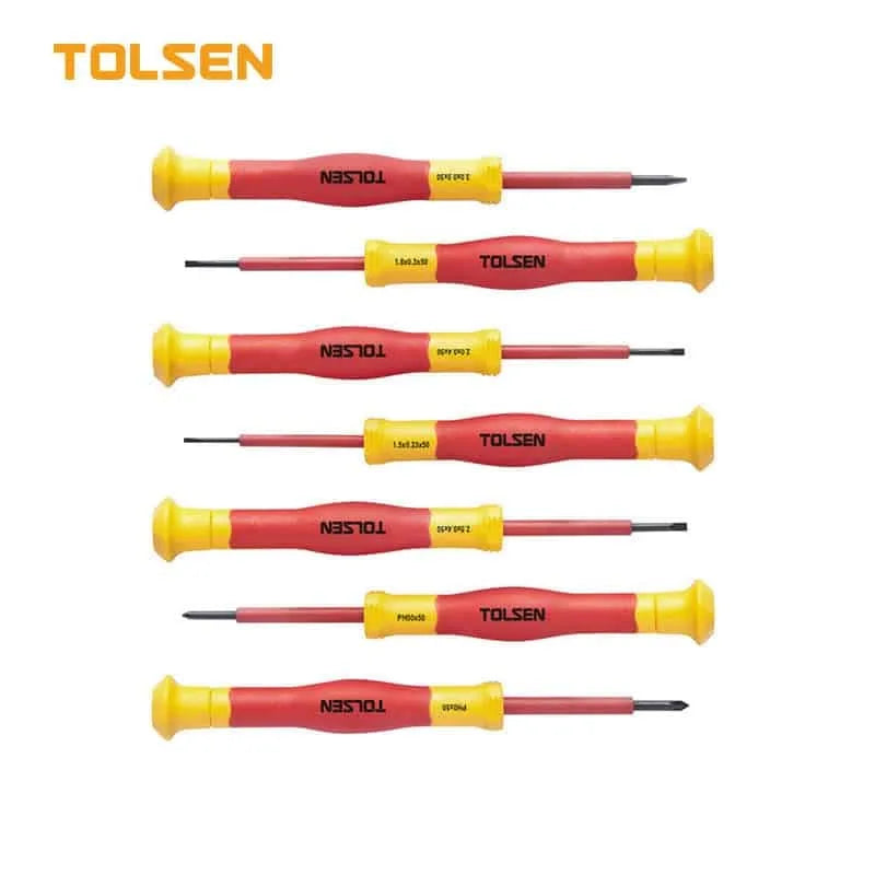 • 5pcs insulated precision slotted screwdrivers: 1.5×0.23x50mm, 1.8×0.30x50mm, 2.0×0.40x50mm, 2.5×0.40x50mm, 3.0×0.50x50mm